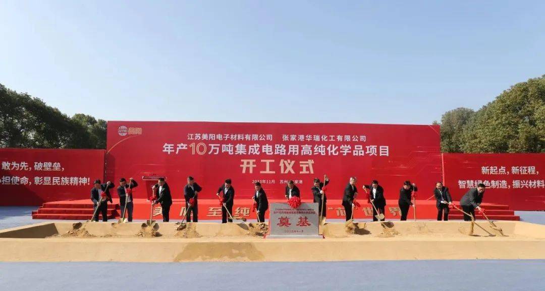 江苏美阳电子材料有限公司以其全资子公司——张家港华瑞化工有限公司(建于2003年,原生产丙烯酸酯类产品),进行技术改造,建设年产10万吨集成电路用高纯化学品项目。建设智能化流水生产线,总控室、纯化及混配车间、仓库、储罐区等公用工程;购置分离纯化装置、自动灌装机和洗瓶机、纯水系统、检测仪器、环保安全等配套设施,共计600多台(套)。关键设备系国外进口,工艺技术具有自主知识产权,达到国际水平及国内领先地位,产品质量符合国际半导体产业协会(SEMI)技术标准(G4、G5),适用于8-12寸集成电路半导体芯片生产线。